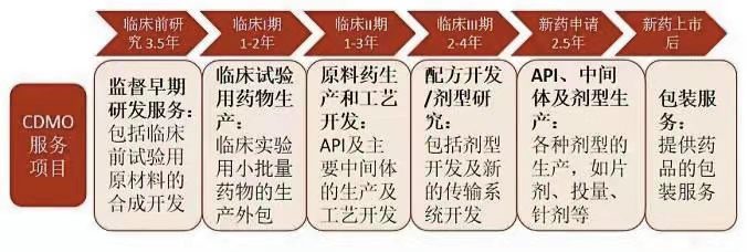 CDMO(Contract Development Manufacture Organization):即合同研發(fā)生產(chǎn)組織,屬于醫(yī)藥外包服務(wù)的一種,業(yè)務(wù)模式包含從臨床前研究、臨床試驗(yàn)到商業(yè)化生產(chǎn)階段的研發(fā)、采購、生產(chǎn)等整個供應(yīng)鏈體系,為制藥企業(yè)提供創(chuàng)新性的工藝研發(fā)及規(guī)?;a(chǎn)服務(wù),以附加值較高的技術(shù)輸出取代單純的產(chǎn)能輸出(CMO代工)。